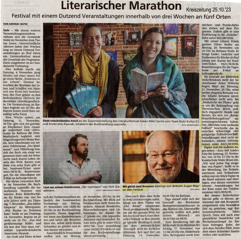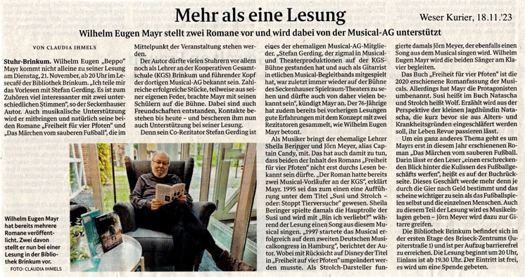 Wilhelm Eugen Mayr liest am 21. November in Brinkum |
